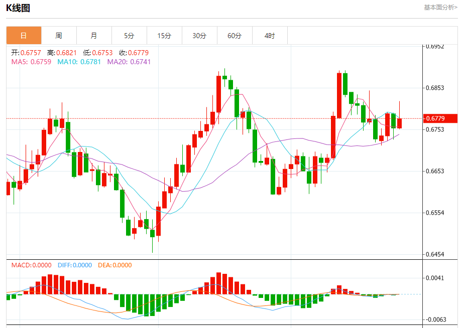 今天的预期交易区间在0.6750支撑和0.6870阻力之间