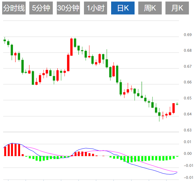今日预期交易区间在0.6440支撑和0.6540阻力之间