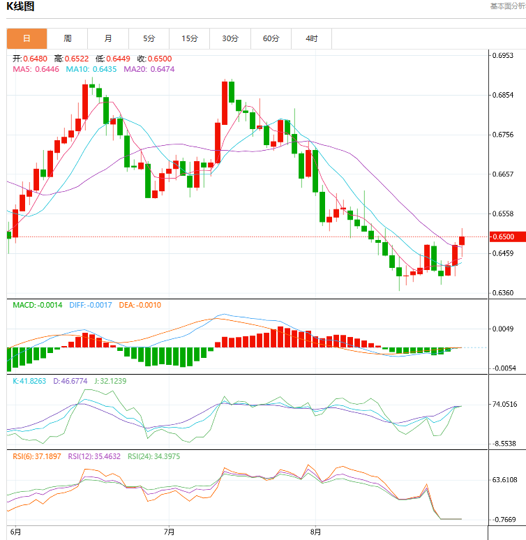 澳元在前一天大幅上涨后,周三走低。欧洲时段,澳元/美元报0.6473,当日下跌0.10%。
