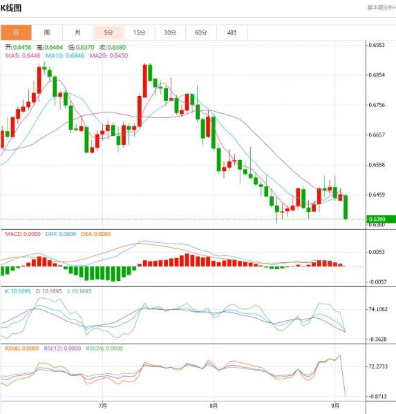 澳大利亚储备银行在今天的政策会议上维持利率不变后,澳元周二暴跌。欧洲时段,澳元/美元报0.6373,跌幅1.36%。