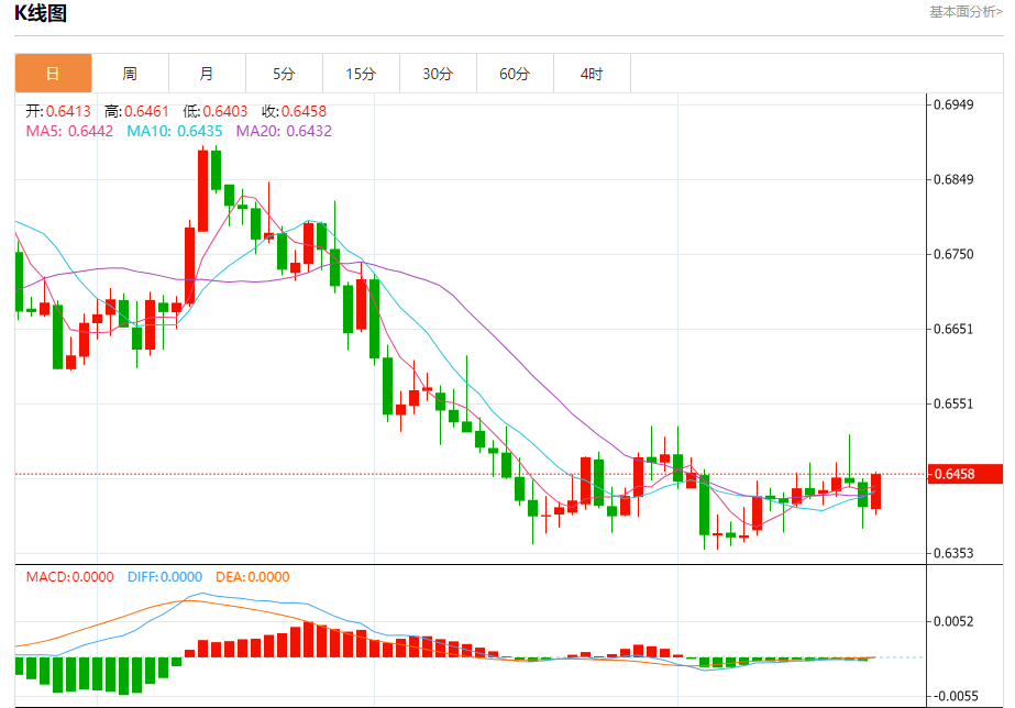 今天的预期交易区间在0.6360支撑和0.6480阻力之间