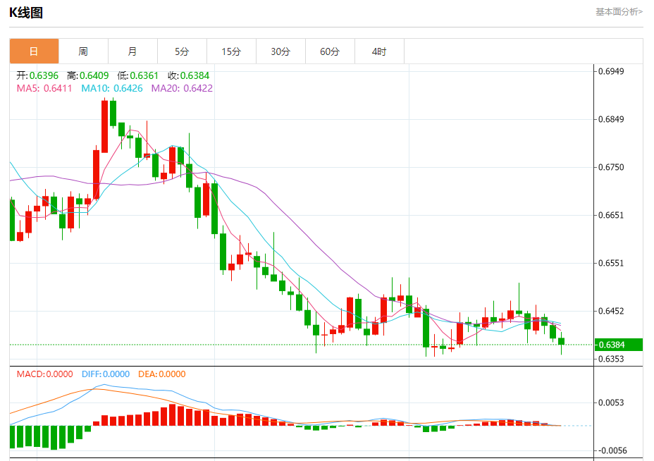 今天的预期交易区间在0.6330支撑和0.6430阻力之间
