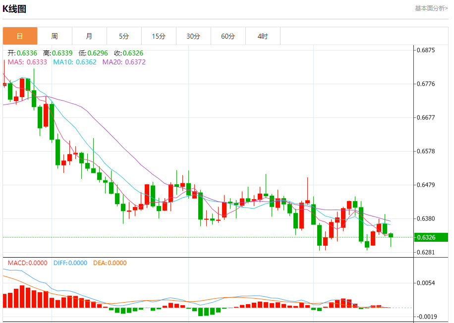 今天的预期交易区间在0.6240支撑和0.6340阻力之间