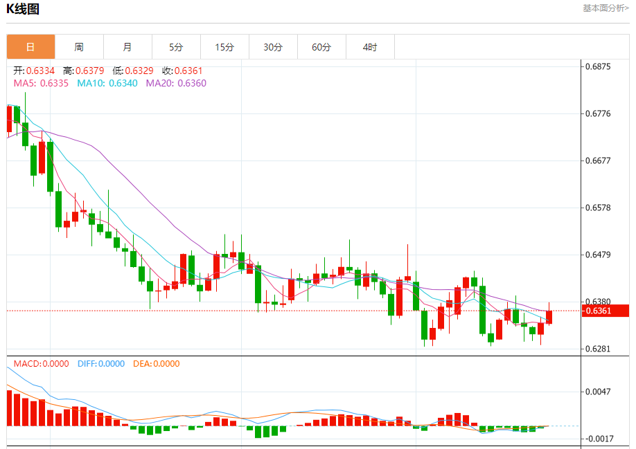 今天的预期交易区间在0.6290支撑和0.6400阻力之间