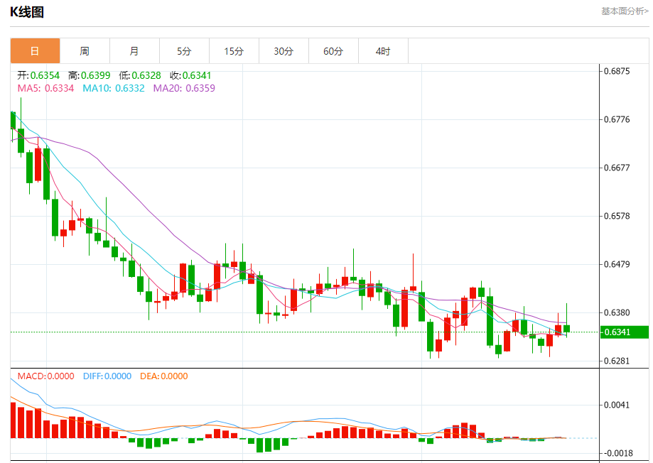 今天的预期交易区间在0.6300支撑和0.6370阻力之间