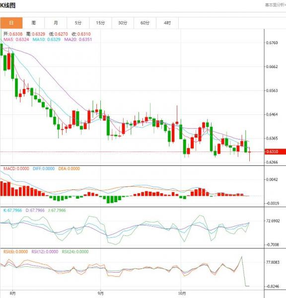 澳元已从今天早些时候收复失地。欧洲时段,澳元/美元报0.6303,下跌0.07%。