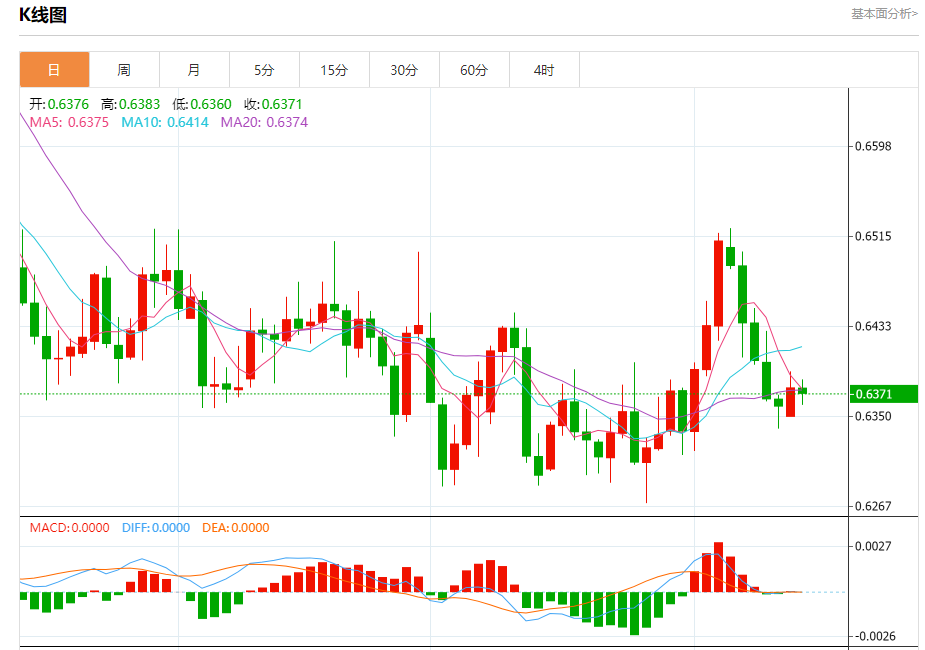 今天的预期交易区间在0.6300支撑和0.6400阻力之间