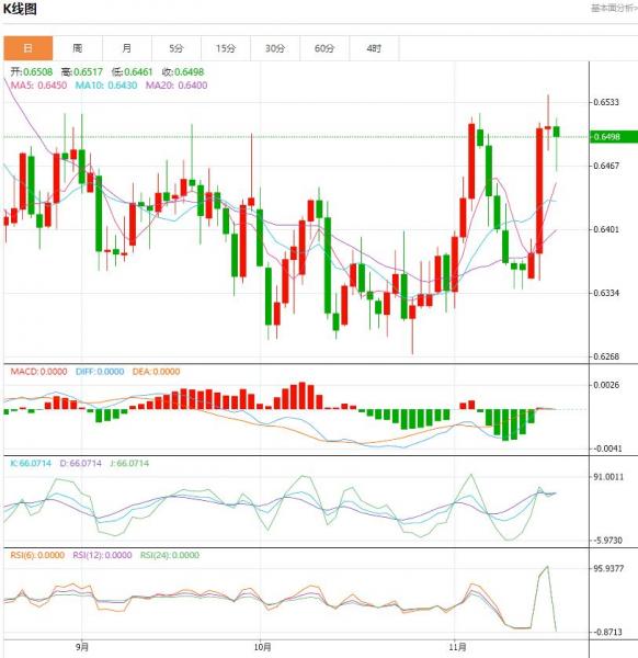 周四澳元走低。欧洲时段,澳元/美元报0.6492,下跌0.27%。