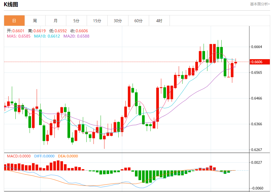 今天的预期交易区间在0.6570支撑和0.6670阻力之间