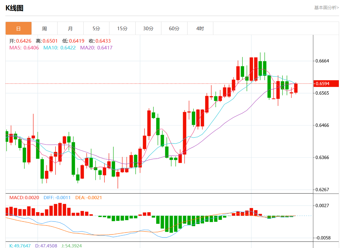 支撑位:0.6640 0.6620 0.6600