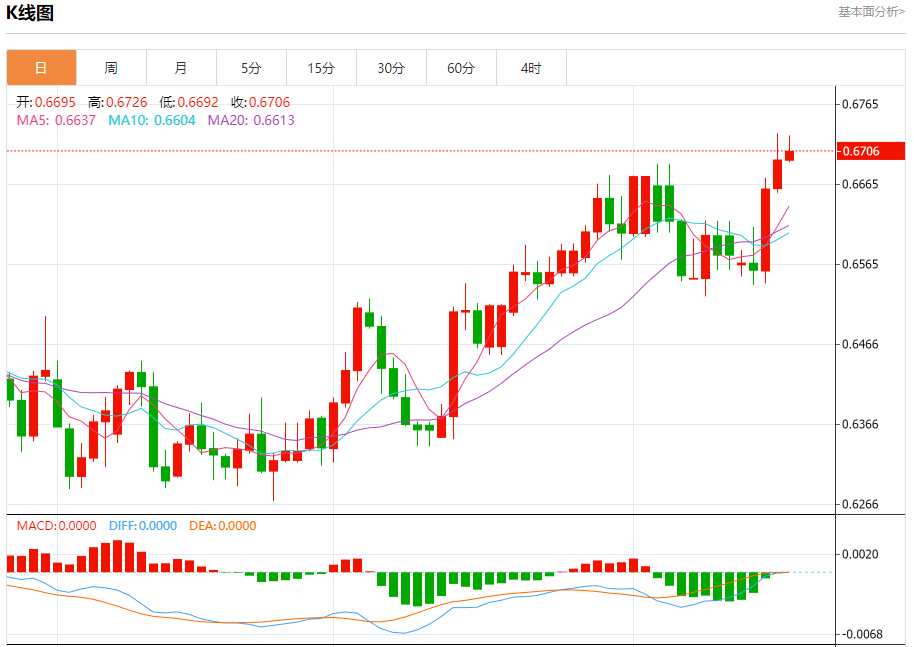 今天的预期交易区间在0.6680支撑和0.6780阻力之间