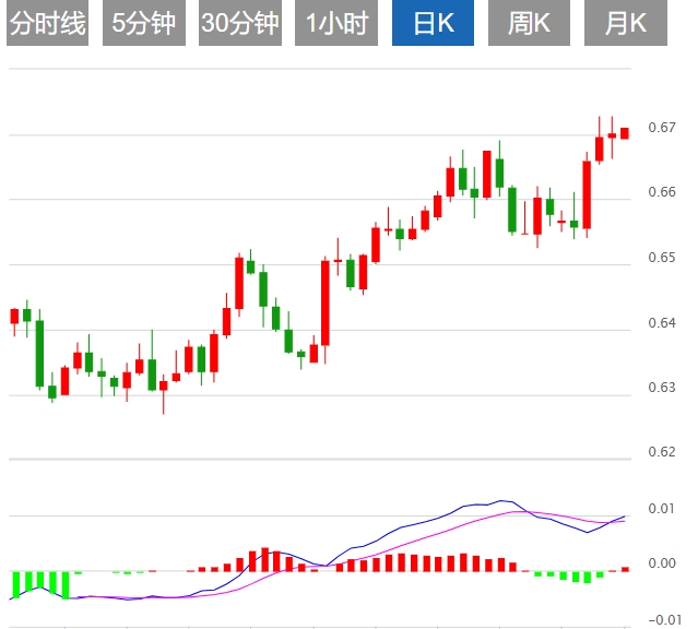 技术分析:澳元在测试近期高点后徘徊在0.6700附近