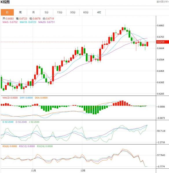 澳元周五小幅走高。欧洲时段,澳元/美元交投于0.6693,涨幅0.09%。澳大利亚央行的政策制定者正在密切关注本周澳大利亚和中国的通胀数据。澳大利亚11月份的CPI同比下降至4.3%,低于10月份的4.9%,低于市场估计的4.4%。这标志着自2022年1月以来的最低通胀率,因为食品和能源价格在11月份比一个月前有所放缓。