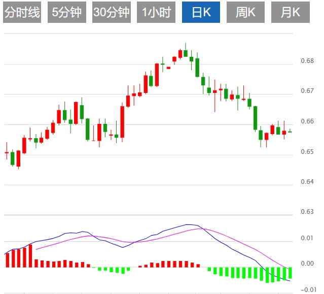 今天的预期交易区间在0.6510支撑位和0.6630阻力位之间