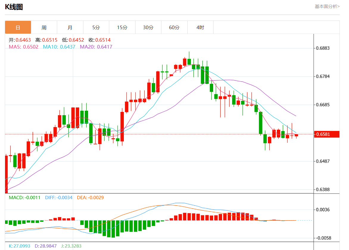 今日分析:在0.6590下方做空头,目标在0.6555和0.6540。