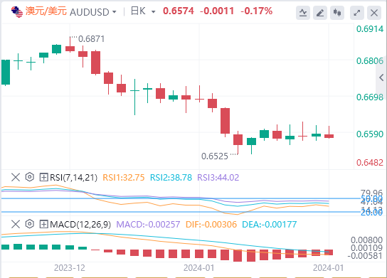 澳元/美元上周五下跌0.17%。澳元扭转了周四0.11%的涨幅,收于0.65737美元。澳元升至0.65805美元的高点,然后跌至0.65704美元的低点。