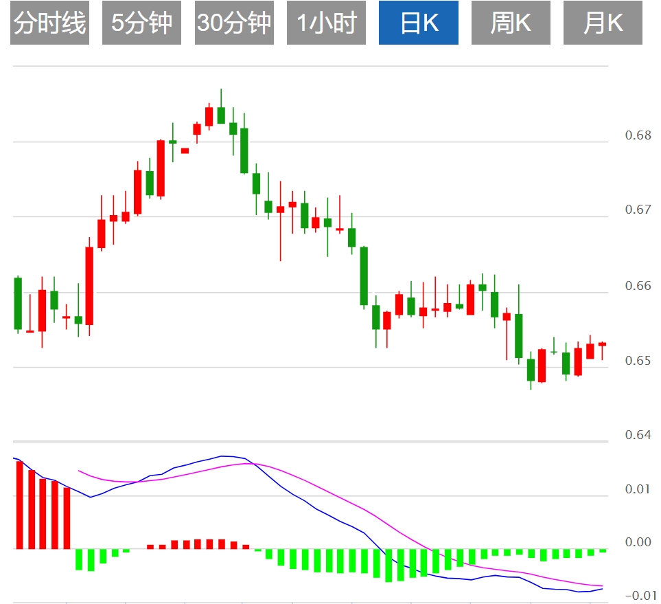 技术分析:澳元在14日均线前交投于0.6530附近