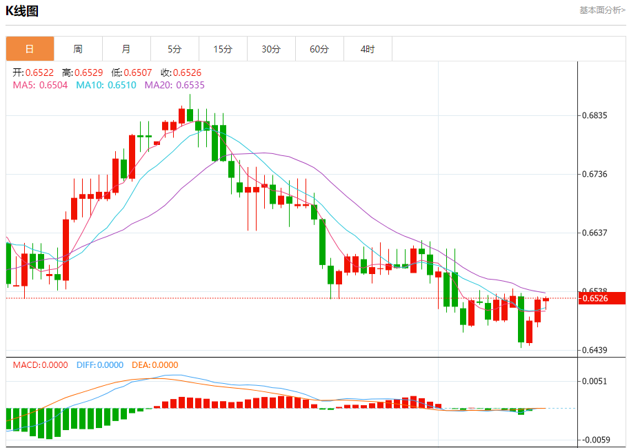 今天的预期交易范围在0.6460支撑位和0.6565阻力位之间