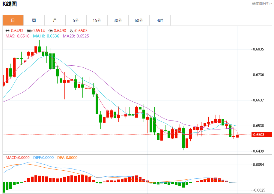 今天的预期交易范围在0.6470支撑位和0.6570阻力位之间