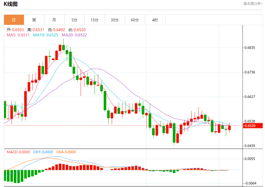 今天的预期交易范围在0.6470支撑位和0.6570阻力位之间