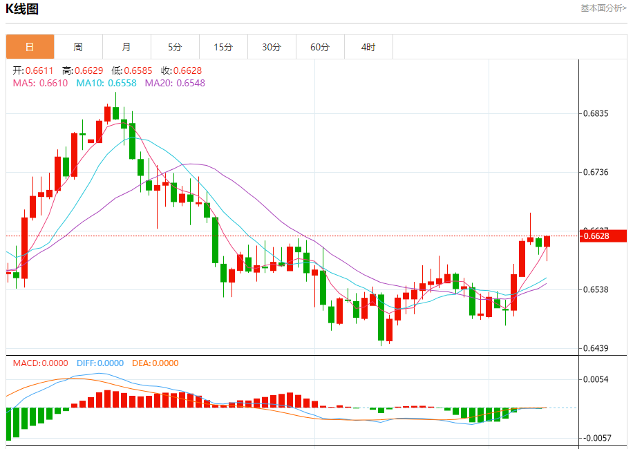 今天的预期交易范围在0.6570支撑位和0.6670阻力位之间