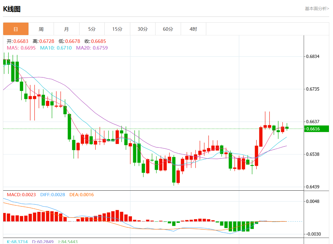 支撑位:0.6665 0.6650 0.6635
