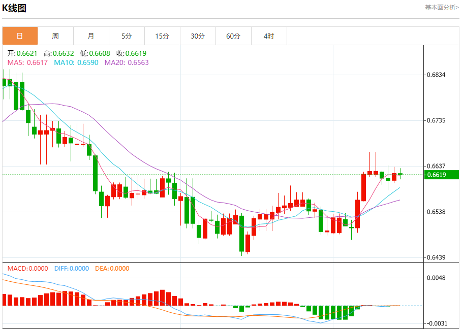 今天的预期交易范围在0.6580支撑位和0.6680阻力位之间