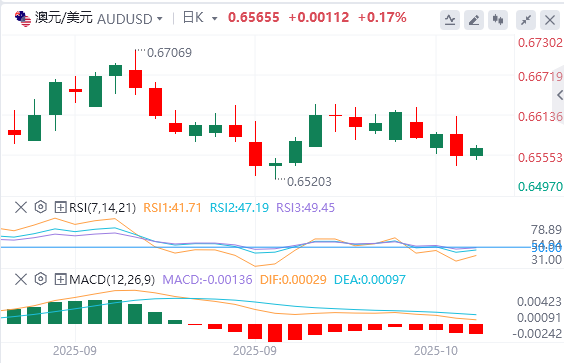 美国消费者信心疲软将支持美联储采取更加鸽派的利率路径。对美联储多次降息的押注增加将缩小利差,有利于澳元。窄幅利差可能会使澳元/美元突破50日均线,目标为0.66美元。