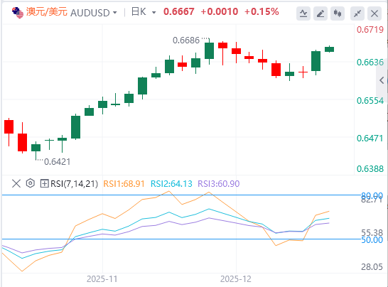 成功突破九日指数移动平均线(EMA)改善了短期价格动能,促使澳元兑美元对目标为3个月高点0.6685,随后是0.6707,为2024年10月以来的最高点。