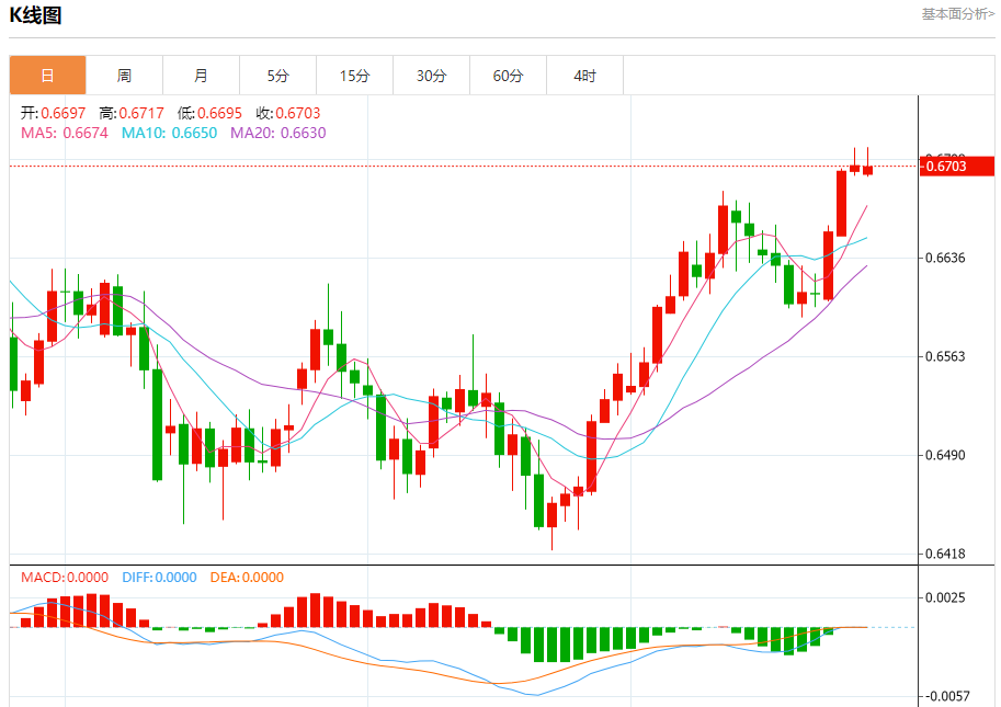 强支撑:0.6690—0.6695(日线5日均线+日内低点)。为短线多头核心防守位;失守则进一步考验0.6670—0.6680。