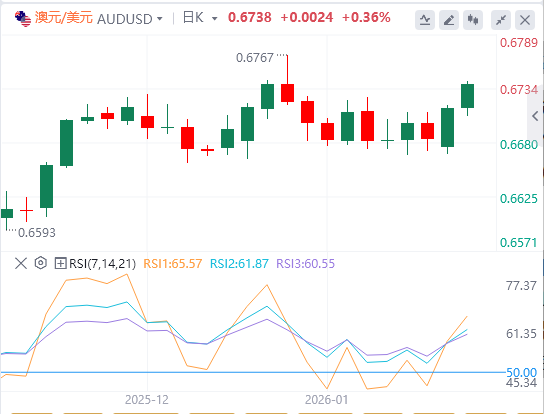 澳元/美元汇对周二的交易价格约为0.6710。日线图分析显示该货币对在九日指数移动平均线(EMA)附近盘整,显示短期偏向中性。与此同时,14天相对强弱指数(RSI)位于56.70,仍位于中线以上,强化了基础的上涨动能。