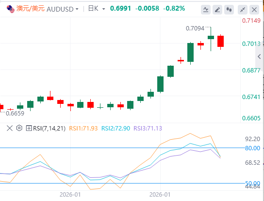 澳元兑美元汇率可能测试0.7094,这是自2023年2月(1月29日记录)以来的最高水平。进一步上涨将支持该货币对试探上升通道的上界,约在0.7140附近。