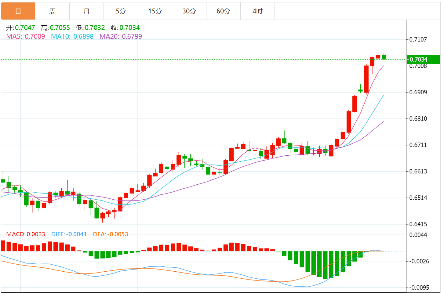 澳元/美元汇率走势分析:澳元在美元小幅下跌时收复早些时候的跌幅