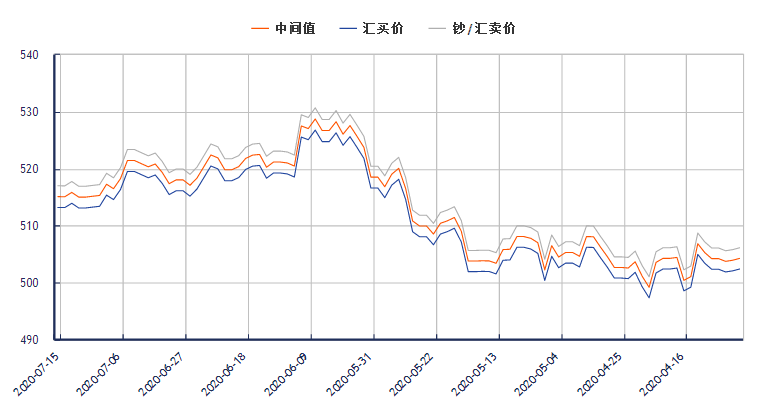 加元兑换人民币汇率(2020年7月15日)