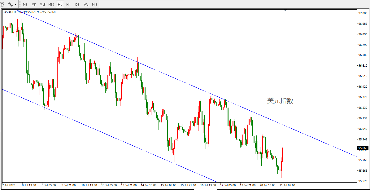 美元指数亚盘下跌至95.60位置出现了反弹,预计美盘前美元指数会维持强势,但目前价格依旧维持在下降通道内运行,趋势上美元坚持看空不变。目前美元指数反弹压力关注95.95~96.00区间。很多朋友问美元指数的多空分水岭位置在哪里,可以告诉大家在97.80位置,其下高空为主。