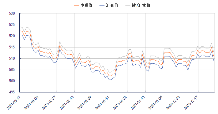 外汇网提供今日加元兑换人民币汇率最新中间价(2021年3月17日):
