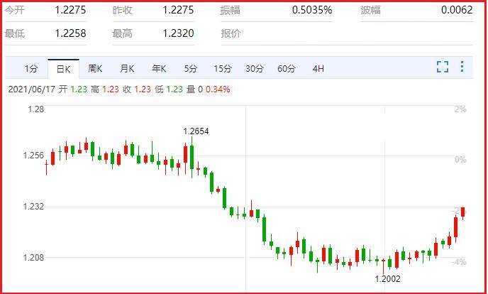 加息是时间表上QE结束之前政策逆转的最后一步,这预示著首次QE减少将缓慢结束。鲍威尔主席煞费苦心降低市场对即将开始逐渐减少的期望,并表示谈话是“讨论会议”。这是美联储所说的“我们还没有准备好宣布缩减”,可能会在未来几个月内通过美联储的正式会议(7月或9月)或者8月的杰克逊霍尔会议来实现。汇价现报1.2320,涨幅0.35%。