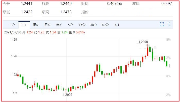 新冠病毒Delta变种得以迅速扩散,供应链中断和劳动力短缺等因素预计将对今年剩余时间加拿大经济增长前景构成压力。就目前而言,投资者正关注一系列经济数据;加拿大国内生产总值(GDP)、美国个人支出和收入数据以及个人价格支出指数将为交易带来新动力;汇价现报1.2440,跌幅0.07%。