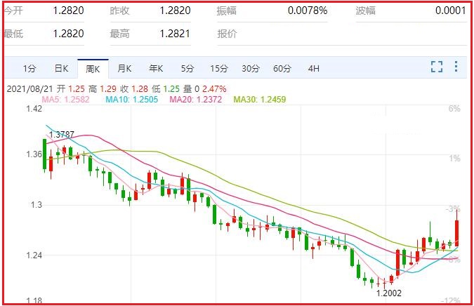 3.由于加拿大7月通胀率意外大涨超出市场预期,再加上强势美元,美元/加元已经突破1.26的关键阻力位后市目标价位1.30。加元大跌的直接原因是加拿大统计局周三公布的2021年7月份加拿大年通胀率同比加速至3.7%,远高于 6 月份的 3.1% 和 2011年以来的十年最高增速,原因是去年的基准年效应和更高的住房成本。
