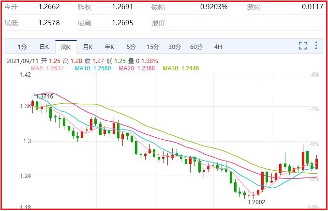 1.美元/加元货币对汇率本周涨幅1.32%,振幅1.95%,最高1.2762,最低1.2518,收于1.2693,周线收一中阳线;