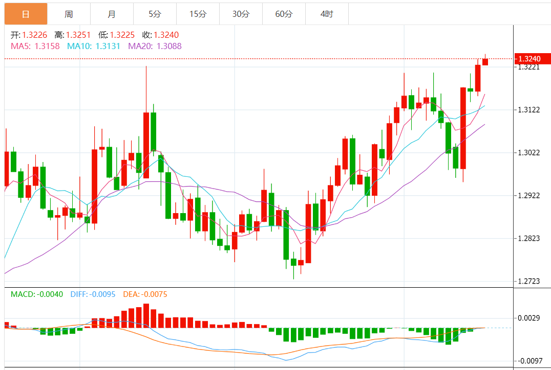 不过,若升破1.3250的短期阻力位,接近1.3330的78.6%延展斐波回档位可能会吸引多头。之后2020年10月高点1.3390将受到关注。