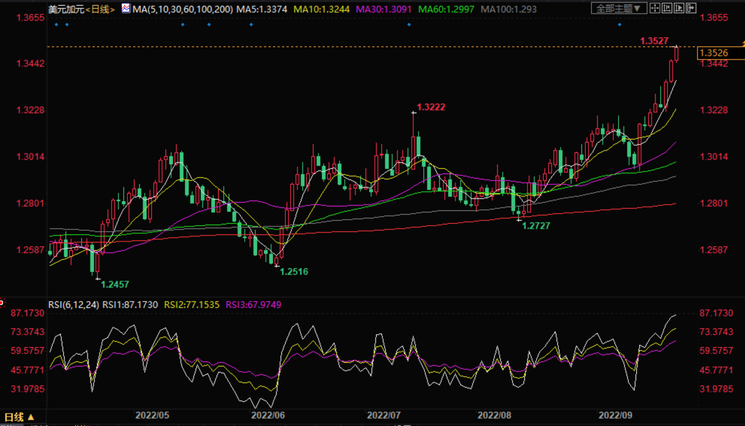 美联储符合市场预期,宣布加息75个基点。美联储的这一举措是此类举措的第三次,因为它希望缓和通胀担忧,即便是要付出“长期低于趋势增长水平”和劳动力市场走软的代价。美联储主席鲍威尔也暗示,抑制通胀的道路并非没有痛苦。尽管美联储符合市场预期,但围绕加息的经济担忧和11月再次加息0.75%的预期使美元处于领先地位,尽管在宣布加息前后出现了严重波动。