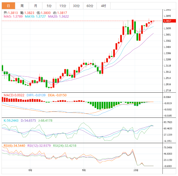 同样充当短期交易过滤器的是100移动均线和9月28日起向上倾斜的阻力线,分别在1.3770和1.3855附近。