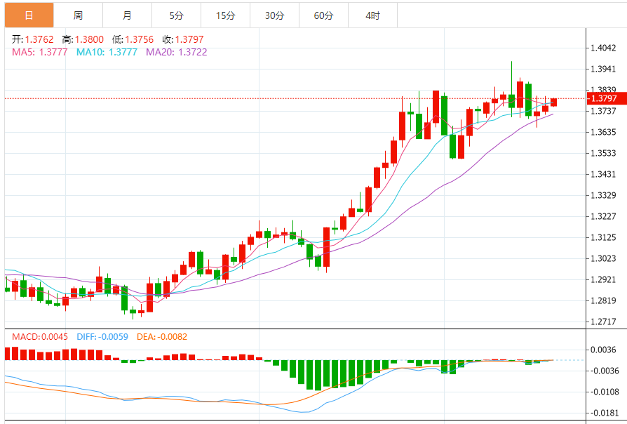 技术上,若美元多头走强,汇价将突破1.3800这一整数关阻力。若预期成为现实,将提振美元/加元上涨至上週五高点1.3898,然后是上周四高点1.3978。