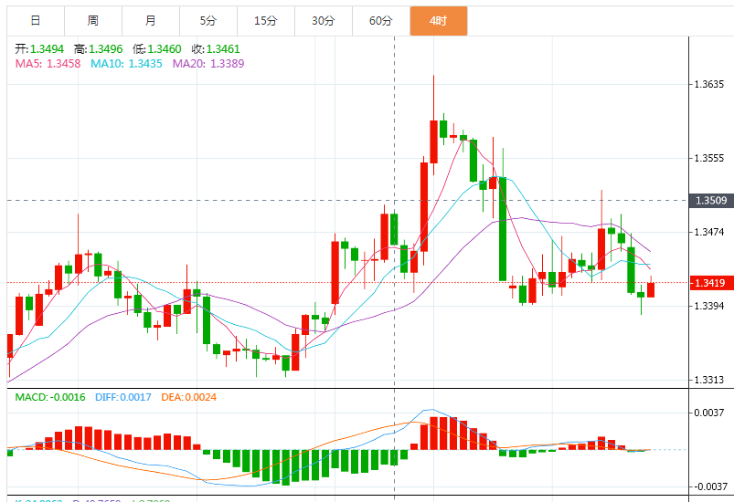 美元兑加元在四小时图的上升三角形态的上升趋势线附近徘徊。上升趋势线始于11月16日低点1.3228,而水平阻力位位于11月10日高点1.3571。