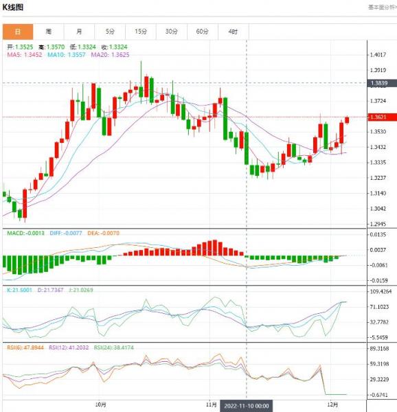 周二加元小幅走低。欧洲时段,美元/加元报1.3620,上涨0.24%。