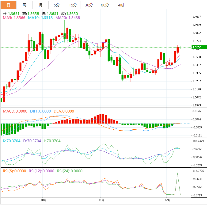 加元基本面:美元/加元继录得三连涨后多头获得喘息,汇价试图明确方向,整理于月线高位1.3650附近。在这期间,加拿大央行货币政策会议之前,美元/加元的波动反映出市场维持焦虑。基本面良莠不齐使得在大规模押注美元/加元方向之前应保持谨慎。交易员也可能倾向于观望并等待週三公佈的加央行利率决议。