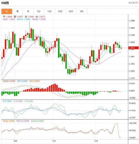 美元兑加元周三小幅上涨,欧洲时段交投于 1.3631。