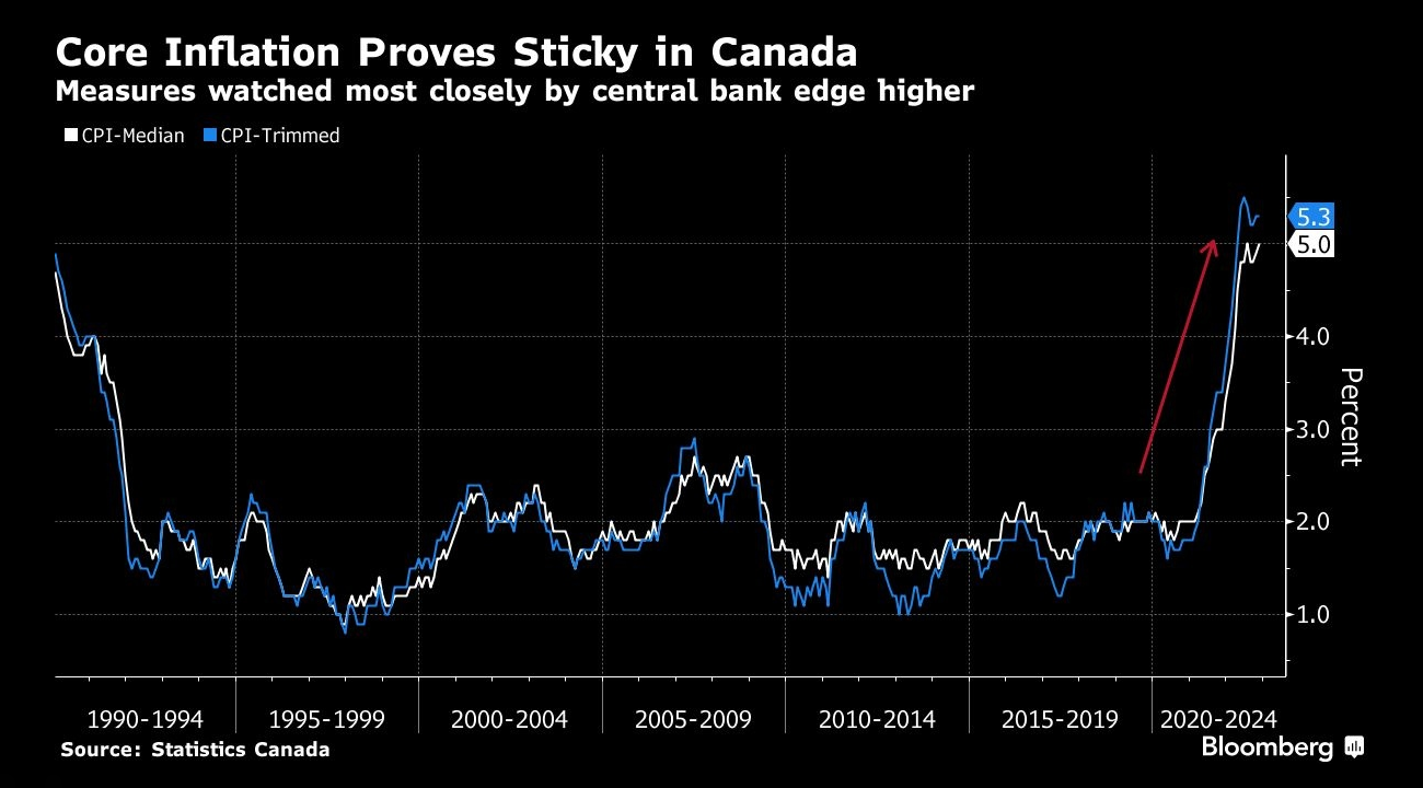 加拿大通胀在11月减速,但潜在通胀压力的关键指标趋于走高,或促使加拿大央行(BoC)再次加息。加拿大统计局公布的消费者价格指数(CPI)显示,12月,CPI同比上涨6.8%,高于经济学家预期的6.7%,低于10月份的6.9%。按月计算,该指数在11月上涨0.1%,高于预期。报告显示,通胀压力仍然居高不下,即使经济放缓,借贷成本上升也抑制了国内需求。