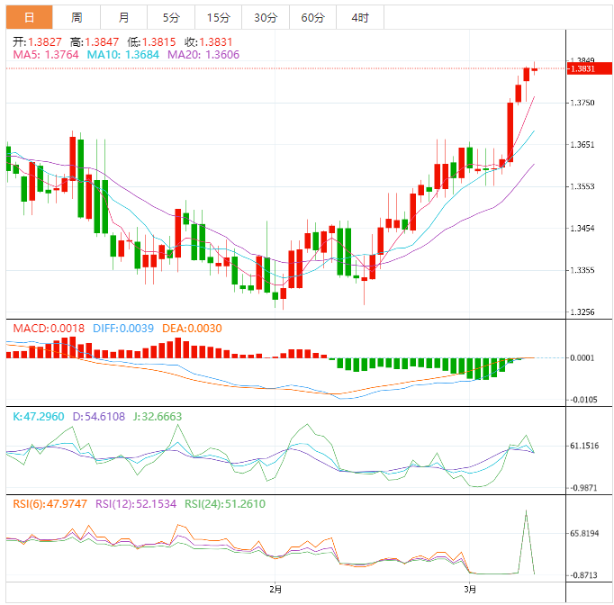 EMA50继续从下方支撑价格,加强了在未来几个交易日获得更多涨幅的预期,并指出守在1.3780上方代表了看涨浪潮继续的初始条件。
